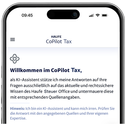 Alle Antworten basieren auf den rechtssicheren Inhalten der Haufe Office Fachdatenbanken. Die verwendeten Quellen sind am Ende jeder Antwort verlinkt – für maximale Nachvollziehbarkeit statt Web-Rauschen.