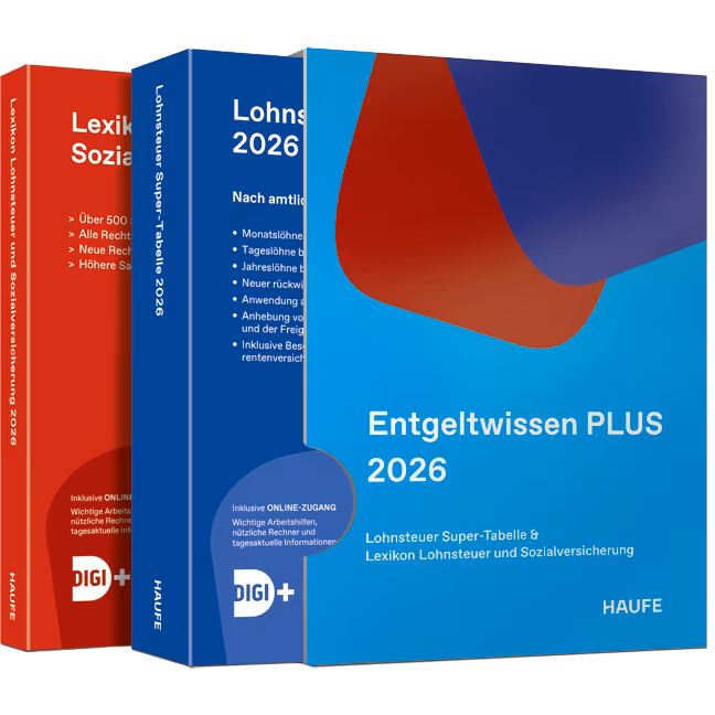 Das neue Entgeltwissen PLUS 2026 bietet Ihnen alles für eine korrekte Lohn- und Gehaltsabrechnung: topaktuelle Informationen, Lohnsteuertabellen, Lexikon, Online-Zugang zu einer umfangreichen Fachdatenbank und zwei kostenlose Haufe Onlinetrainings.