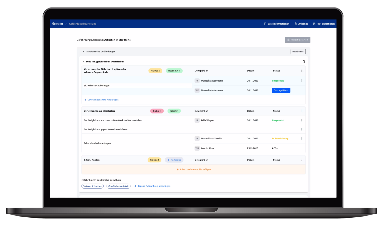 • Gefährdungsbeurteilungen erstellen und bearbeiten