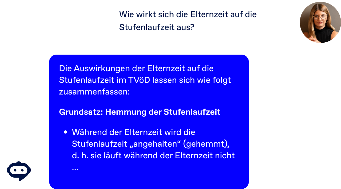 Jetzt neu: Mit dem KI-Assistenten CoPilot HR öD erhalten Sie blitzschnell und fundiert Antworten auf Ihre Personalfragen zum TVöD der Sparte Krankenhaus. Damit bringen Sie Ihre Effizienz auf ein neues Level!