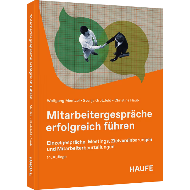 Dieses Buch von Wolfgang Mentzel , Svenja Grotzfeld und Christine Haub enthält Grundlagenwissen, Anleitungen, Leitfäden und Checklisten für die Vorbereitung und Durchführung der wichtigsten Gesprächssituationen, ob Zielvereinbarungsgespräche, Mitarbeitendenbeurteilungen oder Gehaltsverhandlungen.
