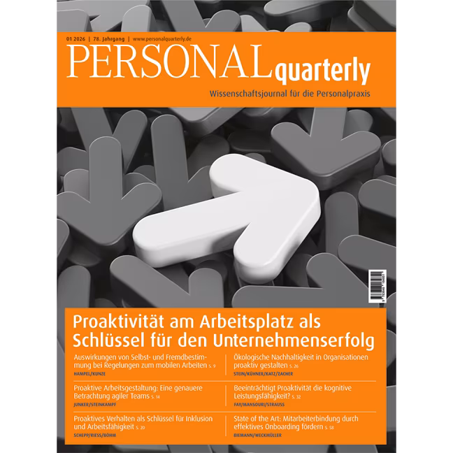 Das Wissenschaftsjournal veröffentlicht praxisrelevante Forschungsergebnisse aus unterschiedlichen Wissenschaftsdisziplinen und Schulen. Damit bleiben Sie über den aktuellen Stand der HR-Forschung auf dem Laufenden und gewinnen ganz neue Sichtweisen auf zentrale Themen wie z.B. Personalauswahl, Leistungs- beurteilung oder finanzielle Anreizsysteme. Mit PERSONALquarterly gestalten Sie Ihre Personalarbeit auf Basis wissenschaftlich gesicherter Erkenntnisse und treffen fundierte Entscheidungen.